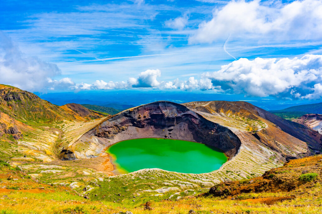 蔵王の御釜(おかま):神秘的なエメラルドグリーンの火口湖