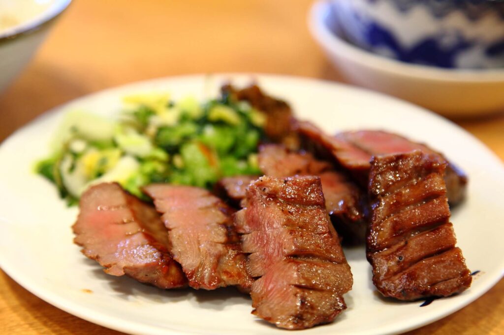 牛タン焼き 厚切りでジューシー。麦飯・とろろ・テールスープとのセットが定番。 仙台駅に到着してすぐの「牛タン通り」でのランチに。
